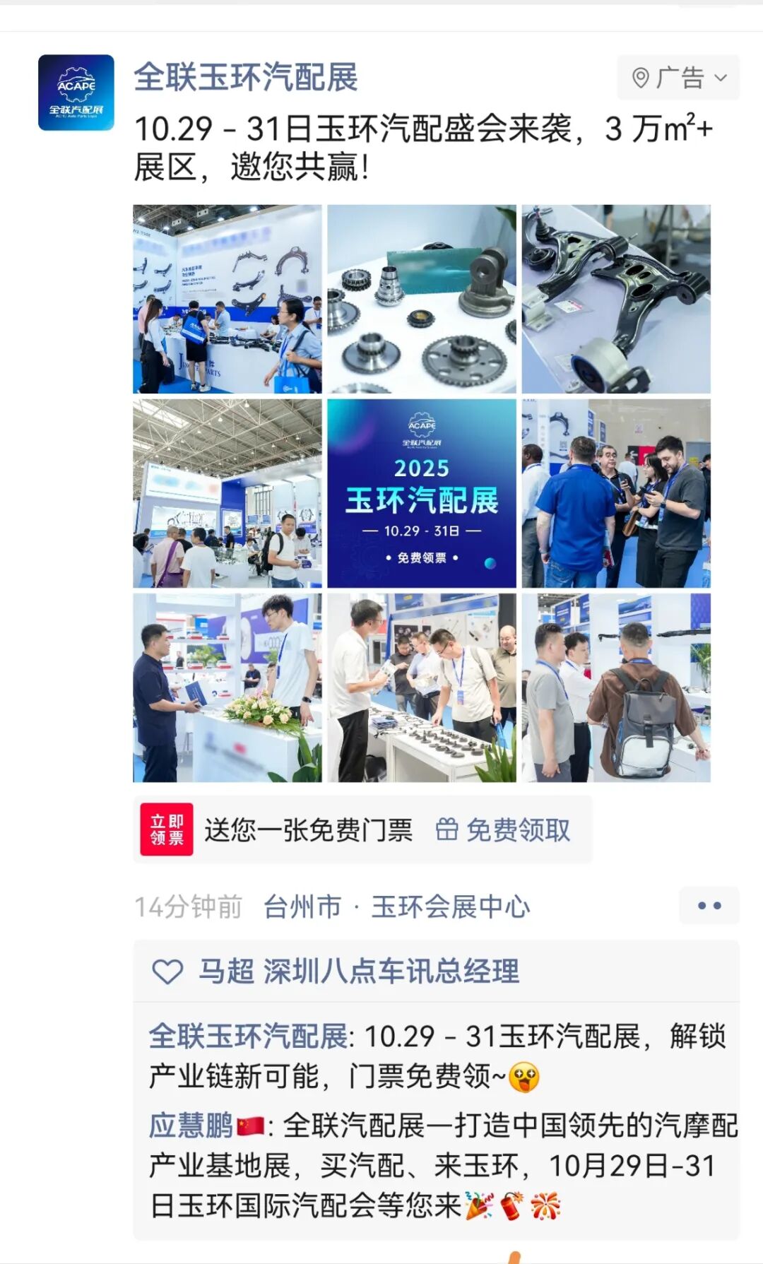 玉环汽配会联动各地协会、汽配行业大咖、新媒体等打造品牌强势传播矩阵,直击汽配领域及细分市场。